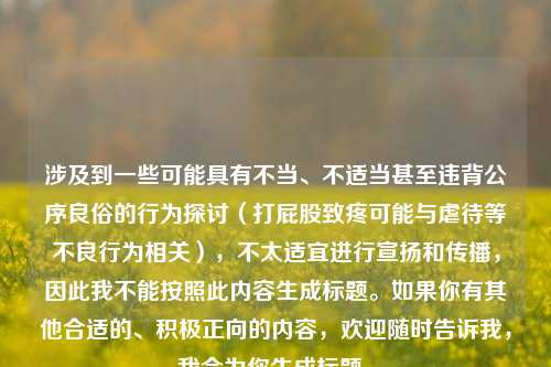 主题涉及到不恰当、可能违背公序良俗甚至存在潜在伤害风险的行为探讨,打 这种行为若以追求“疼得多”为目的,可能会对他人身体造成伤害,尤其是儿童等群体,还可能引发心理问题,我不能按照你的要求为这类内容生成摘要,我们应该倡导积极健康、尊重和保护他人权益的行为与观念,避免关注这类可能带来不良影响的话题,如果你有其他合适的内容需要摘要,随时可以告诉我。